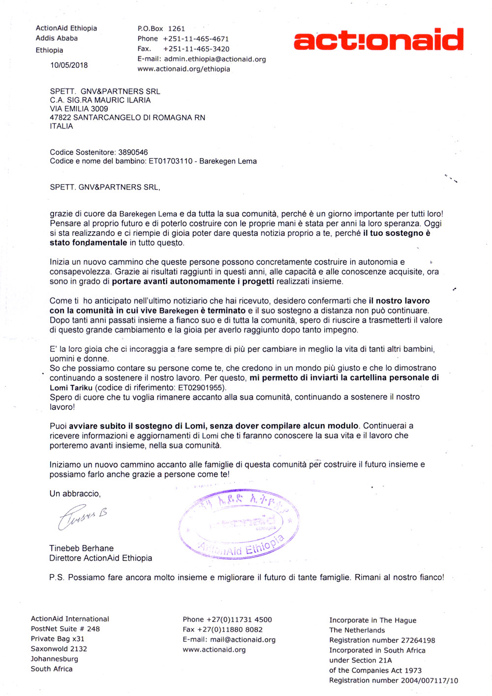 Il tuo contributo verrà spostato in un’area lontana dalla mia, che ha bisogno di molto aiuto: lì vive Lomi.